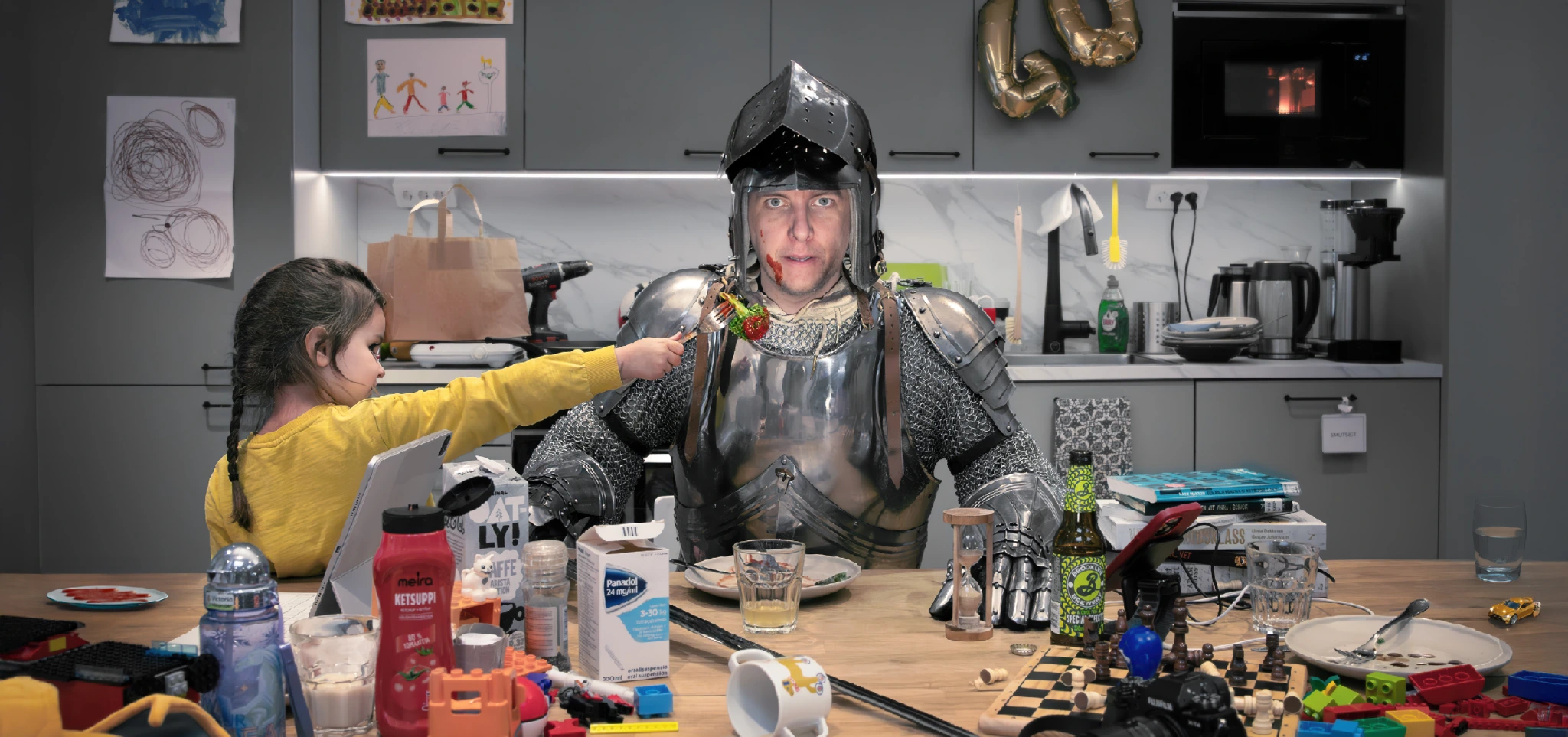 Med varm humor, träffsäkerhet och eftertanke skildrar Samuel Karlsson vardagsriddarens hjältedåd – som sällan handlar om stora bravader, utan om små men avgörande ögonblick. Som att komma ihåg att köpa havremjölk. Eller att stå böjd över ett barn som vägrar ta på sig skor samtidigt som insikten slår till: att man kanske redan har levt hälften av sina dagar, och att de återstående tickar ner i allt raskare takt.
